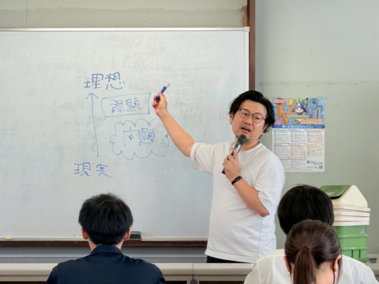 そこで、専門家であるサイボウズ社の山田さん、吉原さんに高校へお越しいただき、直接学べる貴重な経験をしました。